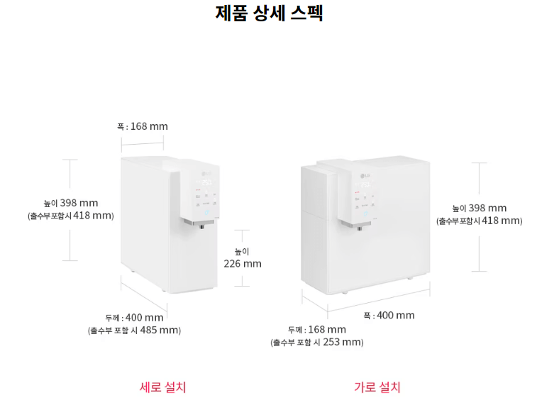 • 1~3인 가구에 적합한 슬림형 구조이나, 출수량 제한이 있으므로 대가족은 고용량 모델이 유리할 수 있음